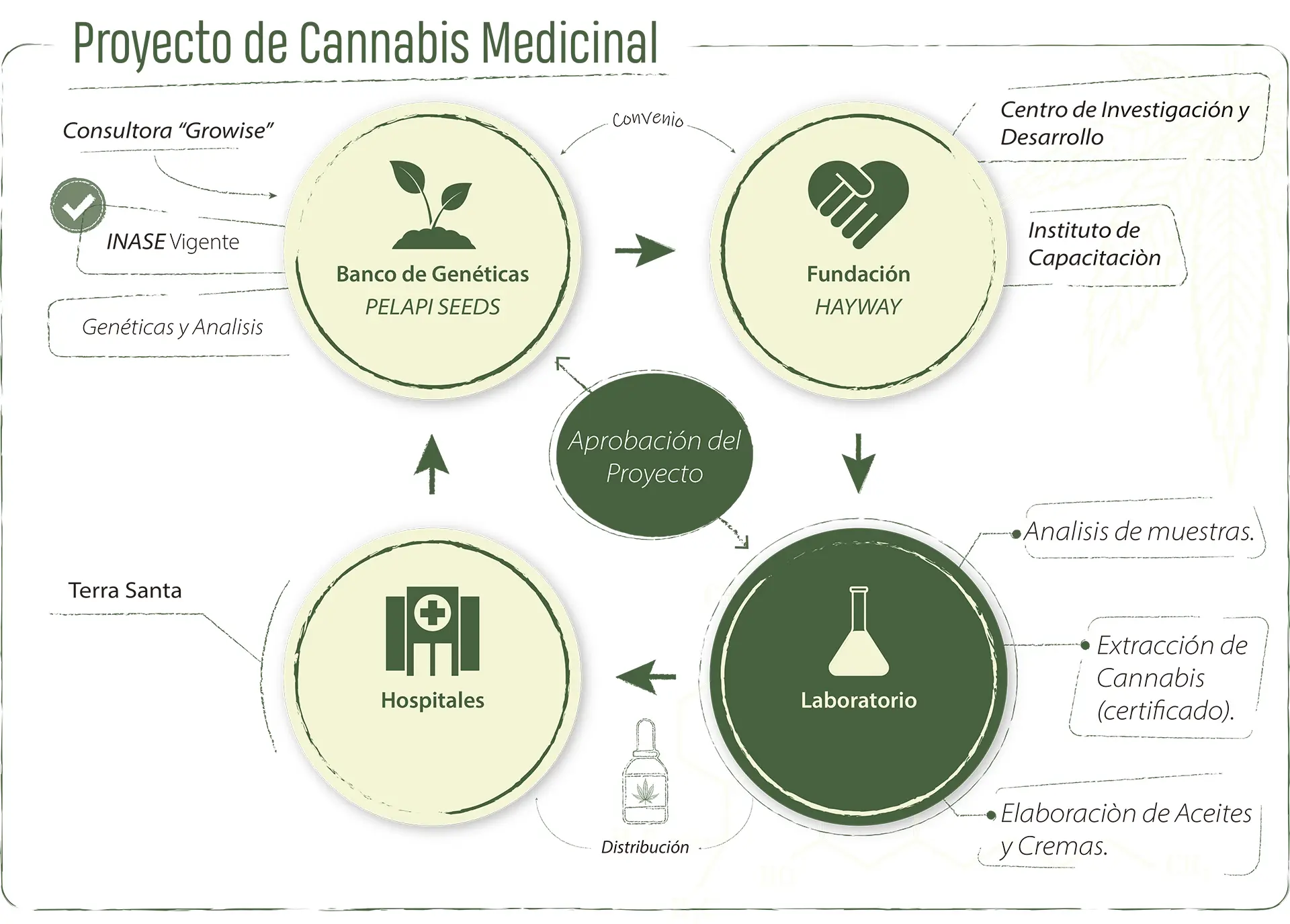 El Proyecto Institucional de Cannabis Medicinal se configura como un modelo integral, moderno y sustentado en evidencia científica. Su estructura abarca desde la genética certificada hasta la distribución hospitalaria, articulando investigación, formación, producción farmacológica y acceso sanitario. Cada etapa está sometida a controles estrictos y respaldada por instituciones que garantizan la calidad, seguridad y legalidad del proceso.